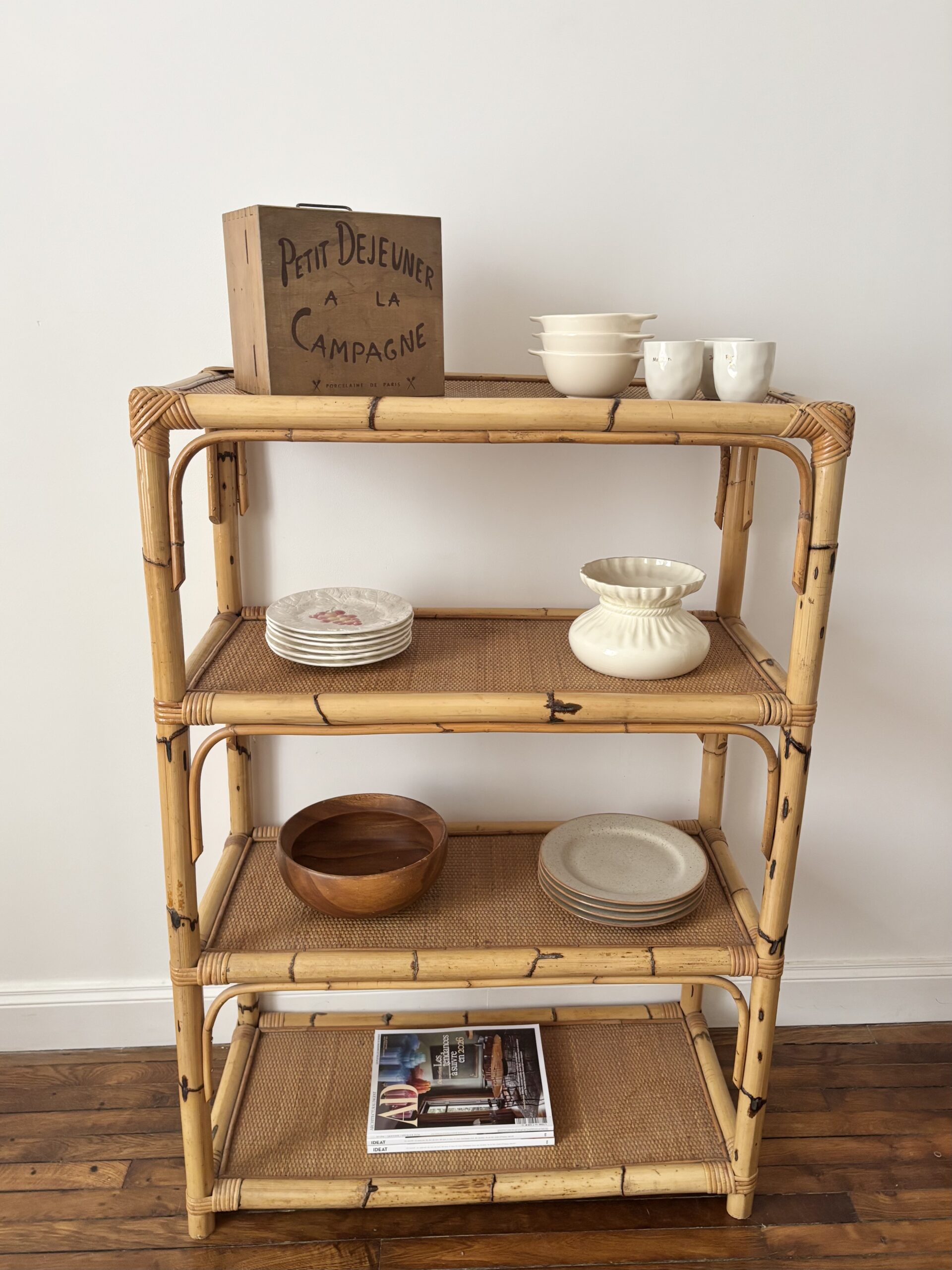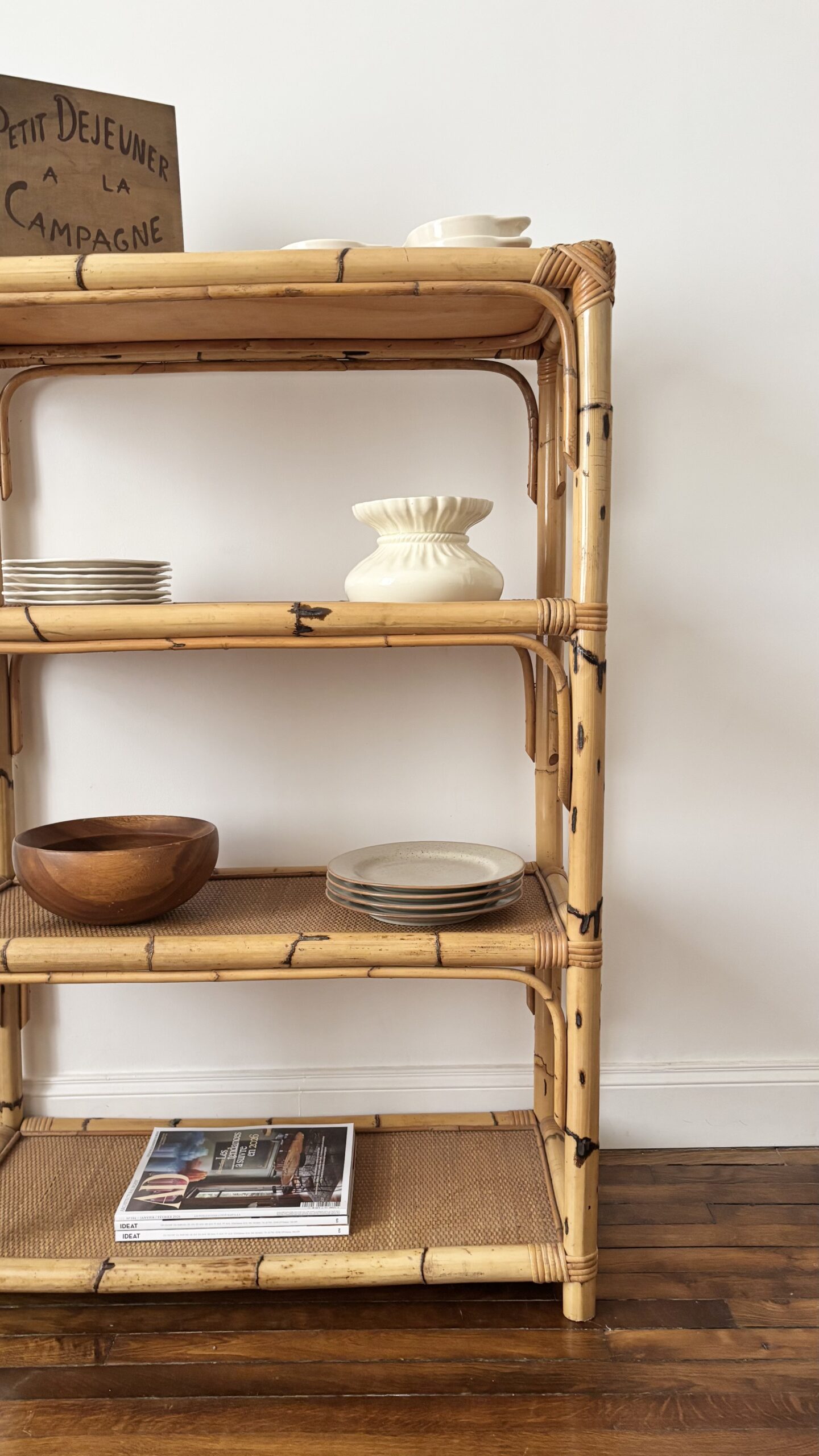 Apportez une touche d’authenticité et de douceur à votre intérieur avec notre étagère en rotin vintage. À la fois légère, élégante et intemporelle, elle séduit par son style naturel qui s’intègre parfaitement dans une décoration bohème, scandinave ou rétro.